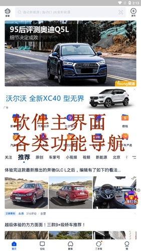 打开软件后,首先进入的是首页,这里汇集了主要功能入口,用户可以根据需求点击查看,同时还能浏览各类汽车资讯,补充相关知识。