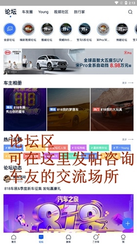 接下来是论坛版块,这里是车友交流的集中区域,按照品牌和车型进行划分,方便找到使用同款车的用户进行沟通。