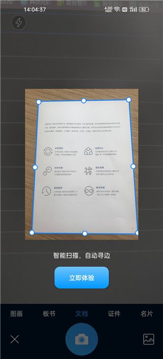 2、相机会自动识别并扫描,自动寻找边界。