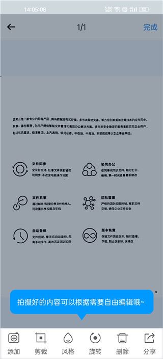 4、拍摄的内容可以根据需要进行裁剪、旋转、删除或分享等操作。