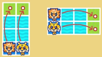 - 狮子和老虎可以跳过小河,横向或纵向都可以。
