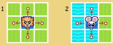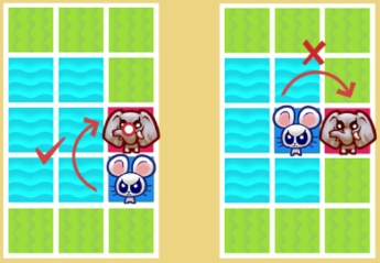 - 每只动物可以吃掉与自己同级或较低级别的敌方动物,以下情况除外: