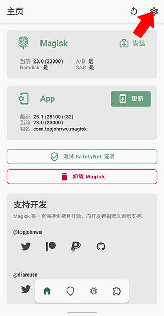 2、往下滑动,找到Magisk选项并开启MagiskHide;