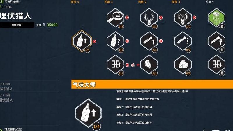 技能点别乱加,直接冲着追踪系去。把足迹高亮范围和隐蔽移动点满,动物隔着老远就能瞅见动静,靠近时还不容易惊跑猎物。武器专精先死磕一种枪械,比如把步枪那条线的零距离校准点出来,弹道稳了远程狙击才靠谱,这些高阶技能解锁后商店才会开放对应的高级瞄具和消音器购买权限。技能树和商店货架是绑死的,光有钱没技能也买不了狠货。